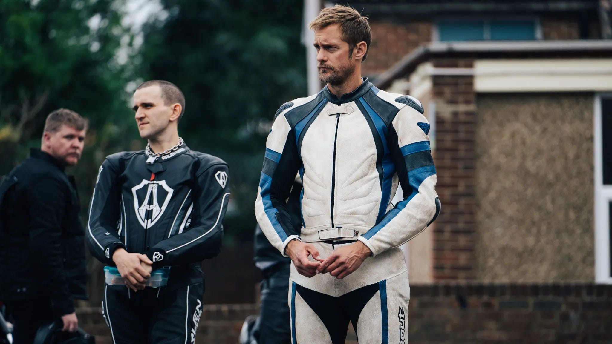 Pillion follows Colin (Harry Melling), who’s a shy gay man living in Bromley, London, with his parents. His world gets flipped upside down when he meets Ray (Alexander Skarsgård), who’s an older hot biker with whom he begins a strict BDSM relationship. Colin does all the cooking and chores and doesn’t even sleep in the same bed as Ray, but in return receives an intense sexual relationship that’s consensual and exciting. Colin starts becoming a part of this punk biker group and loves this dynamic with Ray, but life starts to get in the way. Feelings get big, and will these two be able to make it?
